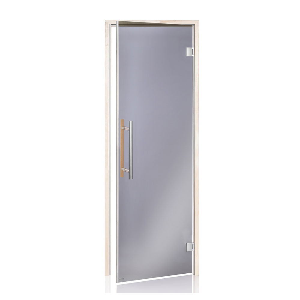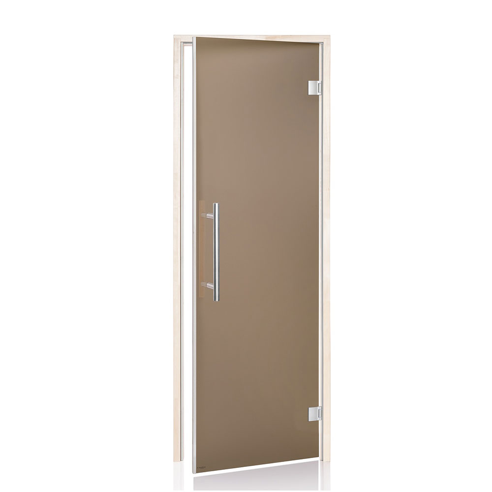 Saunadør med hærdet sikkerhedsglas – 8mm. Kan monteres højre- eller venstrehængt.