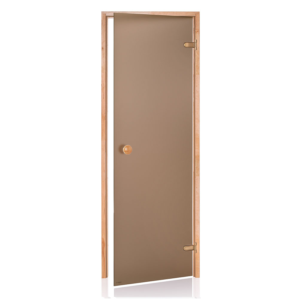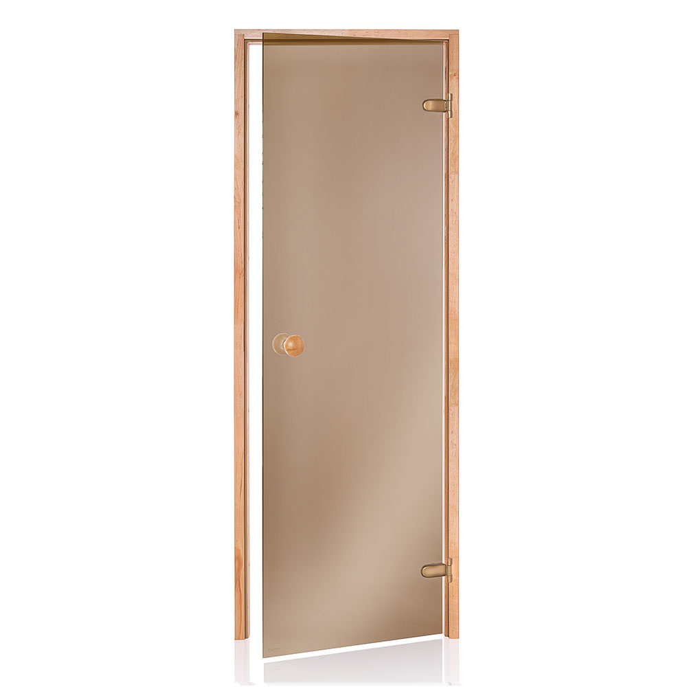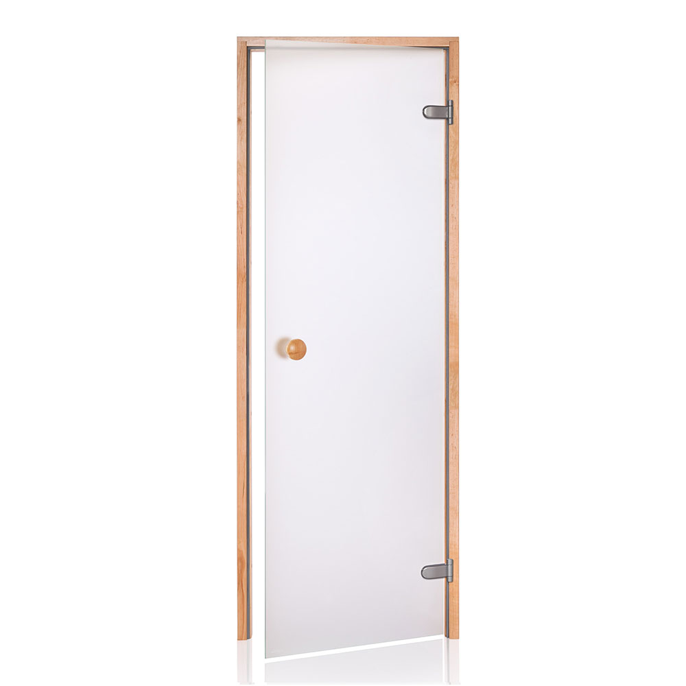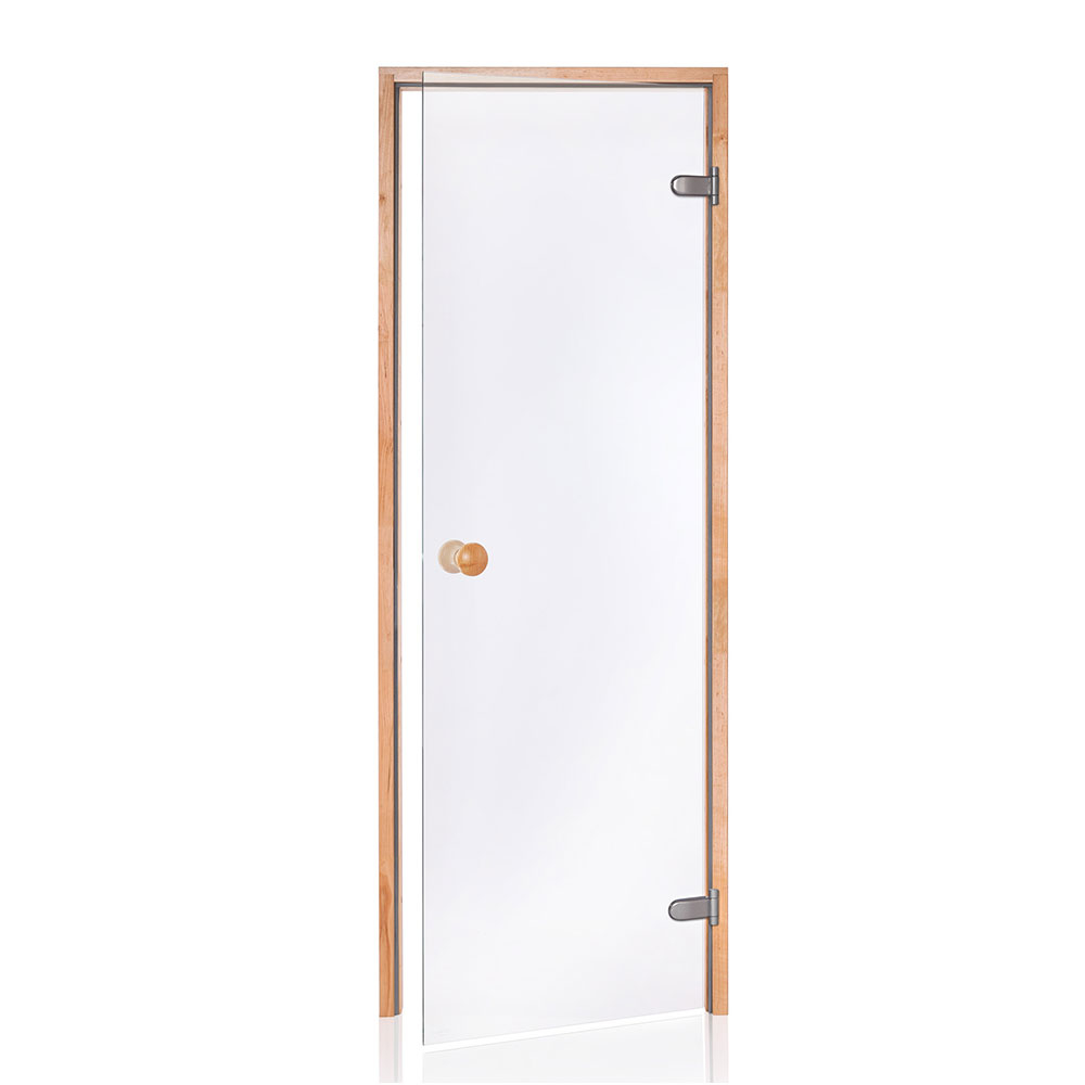Saunadør med hærdet sikkerhedsglas – 8mm. Kan monteres højre- eller venstrehængt.