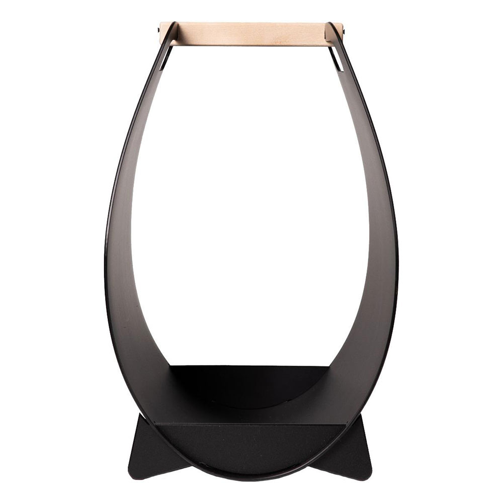 Opbevar og transporter brænde i den stilfulde Narvi brændekurv. Kurven er lavet af slidstærkt plastik, og den er let at bære. Brændekurven har et træhåndtag og matsort overflade.